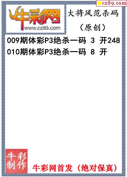 大将风范杀码010期体彩p3图谜(原创)